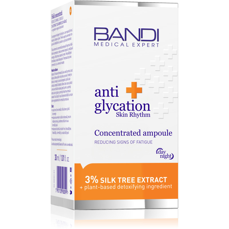 Anti Glycation Skin Rhythm ist ein konzentriertes Ampullen-Serum von BANDI Cosmetics Polen, einer renommierten polnischen Hautpflegemarke mit fast 40 Jahren Erfahrung. Diese fortschrittliche Formel ist Teil eines intelligenten Hautpflegeprogramms, das auf den natürlichen zirkadianen Rhythmus der Haut abgestimmt ist. Mit 2 % Seidenbaumextrakt und einem pflanzlichen Detox-Wirkstoff reduziert sie sichtbar Anzeichen von Müdigkeit und verleiht der Haut neue Energie, Strahlkraft und Glätte.