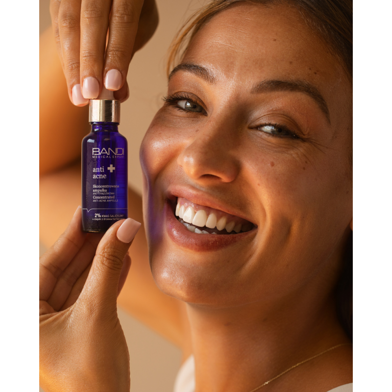 La fiala concentrata anti-acne è un efficace cosmetico anti-acne, sviluppato per la cura della pelle grassa, mista e con imperfezioni. La sua formula liquida e leggera, con unalta concentrazione di acido salicilico e olio di tea tree, riduce efficacemente la formazione di punti neri e lesioni acneiche. La fiala aiuta a pulire le uscite delle ghiandole sebacee, regola la secrezione di sebo e la pelle grassa. Riduce il rossore e la visibilità delle lesioni acneiche.